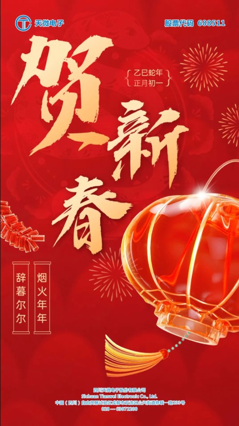 煙火年年、辭暮爾爾。值此新春佳節(jié)來臨之際,四川天微電子股份有限公司向各級(jí)領(lǐng)導(dǎo)、各界朋友、廣大客戶及全體員工,致以最誠(chéng)摯的問候和最美好的新春祝福!